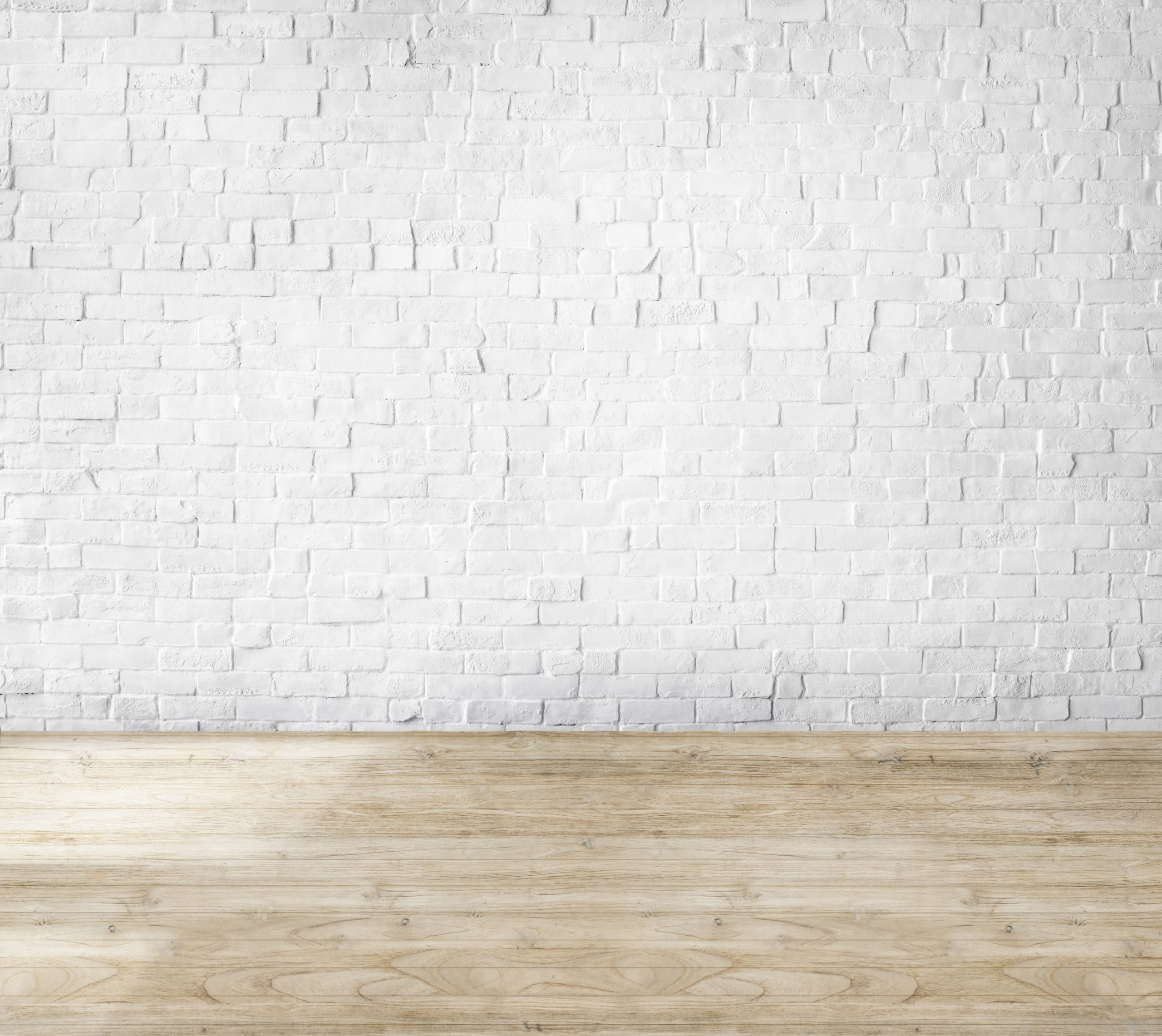 Remodelação de uma parede em pequenos tijolos por uma parede pintada de branco com acabamentos de madeira.